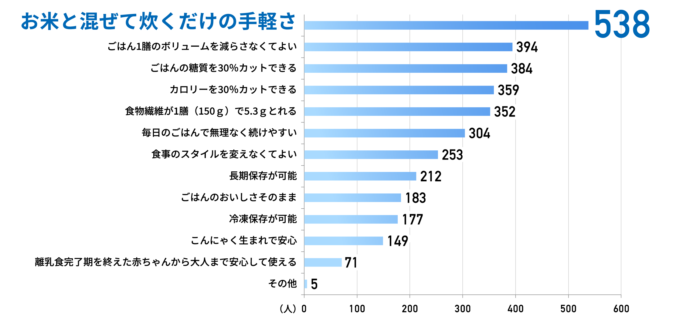 お米と混ぜて炊くだけで糖質、カロリーをカットできる、我慢しなくて良いところがうれしいと話されていました。