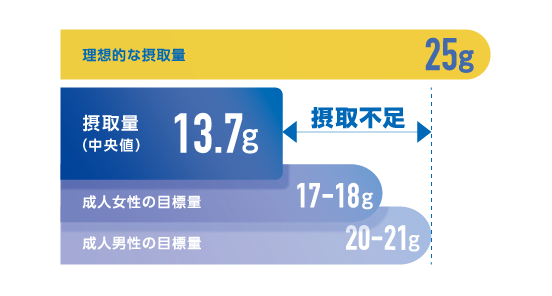 働き盛りである20代から50代の若い世代ほど、食物繊維の摂取量が不足している状況です。